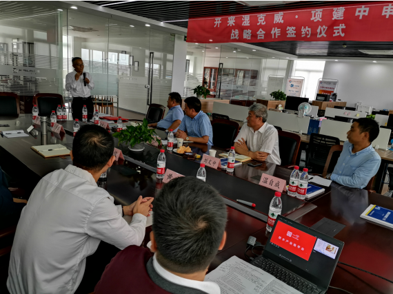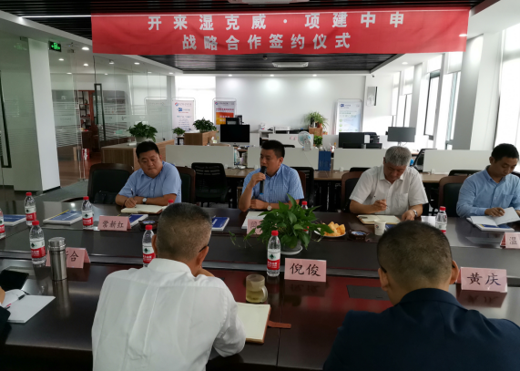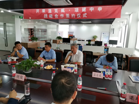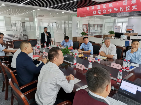 開來濕克威董事長倪貴全與項城上海商會會長閆本亮代表雙方簽署了戰(zhàn)略合作協(xié)議