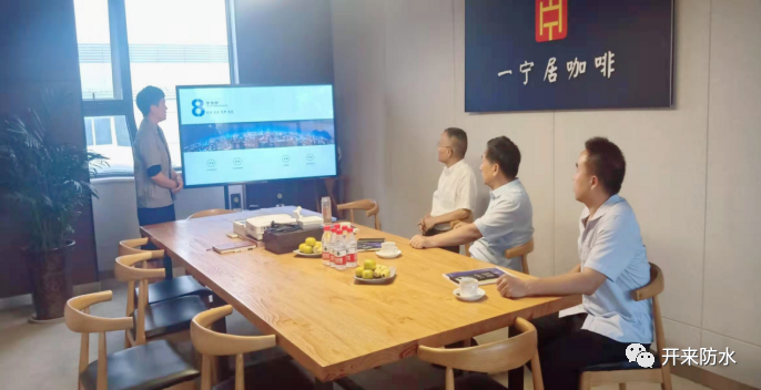 王洋云經理匯報了開來濕克威企業(yè)文化、開來、濕克威、樂活、一寧四大品牌、16大特色產品及國內外典型工程;開來濕克威具有一級防水保溫防腐資質,從1993年在上海創(chuàng)辦以來累計施工項目30000多個,專利29項,參與編制修訂國家、省級標準30多項,是一家集防水材料生產、銷售、施工及技術服務的專業(yè)防水系統(tǒng)提供商。