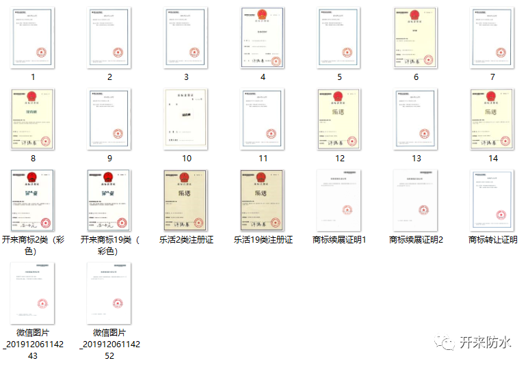 開(kāi)來(lái)實(shí)施品牌戰(zhàn)略,不斷提升品牌形象,4個(gè)注冊(cè)商標(biāo)分別用于工程裝系列防水材料、家裝系列防水材料、定制系列防水材料以及特種系列防水材料的應(yīng)用,品牌群落知名度在業(yè)內(nèi)迅速提高。