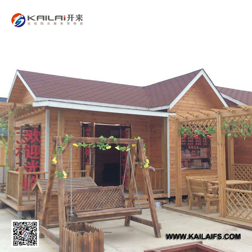 防腐木利用彩色玻纖瀝青瓦營造出的色彩繽紛的效果,讓人宛如進入童話中的世界;玻纖胎瀝青瓦可以適應各種形狀和要求的防腐木屋面,打造出設計師想要的效果;利用瀝青瓦,可以讓防腐木屋面和墻面顏色配比優化,打造天人合一的境界。