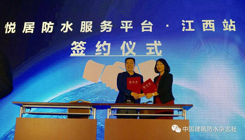 《中國(guó)建筑防水》雜志社悅居防水服務(wù)平臺(tái)與江西省建筑業(yè)協(xié)會(huì)建筑防水分會(huì)合作簽約。